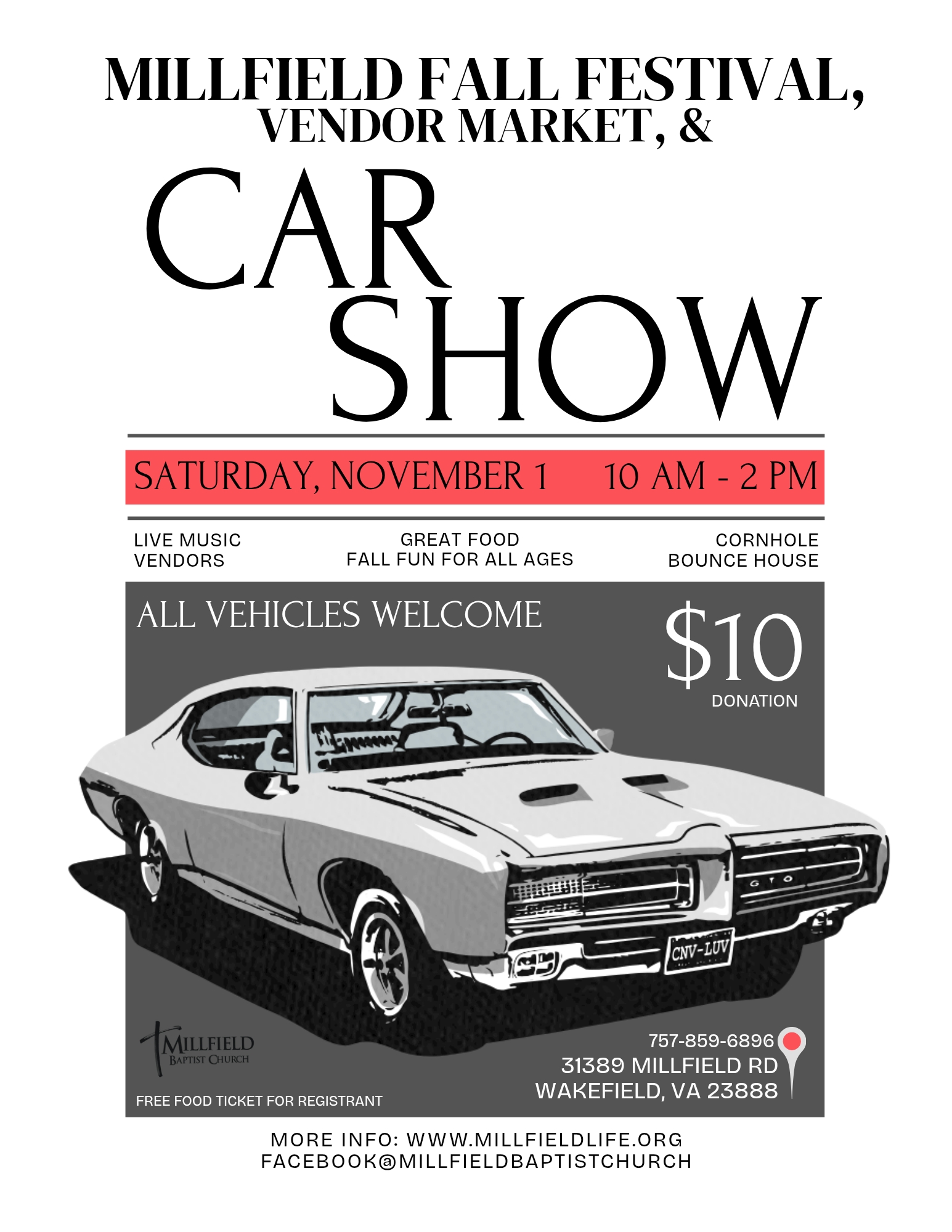 We are holding this great event again this year, but adding in a car show! There will be lots of fun had throughout the day. Please see the flyers. Applications for a vendor or community booth spot, and a registration application for the car show are included. Just click on the PDF's for each to pull them up and print off. If you are unable to print your own then please reach out to us and we will get you a hard copy.